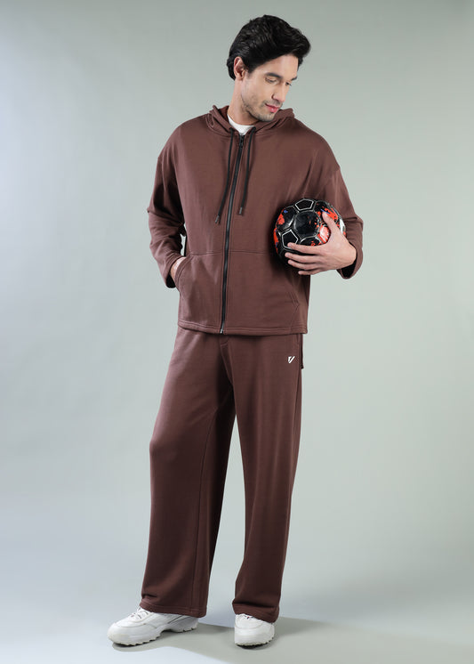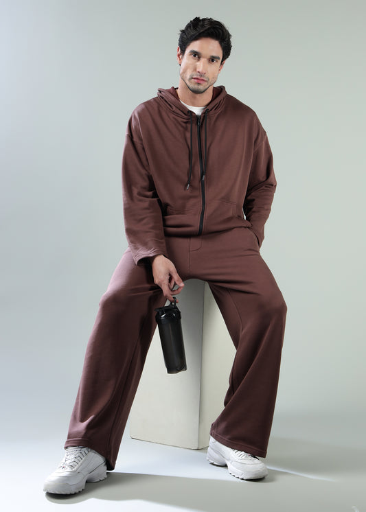 Signature Oversized Zip Up Hoodie Brown